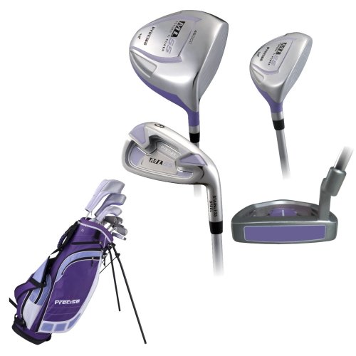 Precise ML55 Ladies Womens Complete Golf Set Includes Titanium Driver, S.S. Fairway, S.S. Hybrid, S.S. 5-PW Irons, Putter, Stand Bag, 4 H/C's Right Hand Purple Review